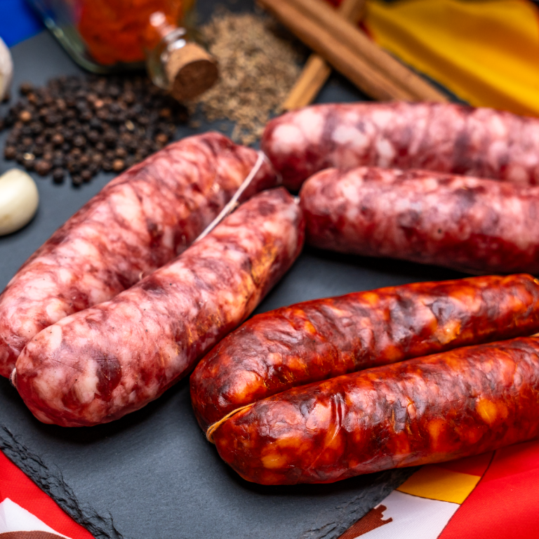Embutidos tradicionales elaborados con carne de cerdo seleccionada y especias, con un sabor auténtico y equilibrado que refleja la riqueza de la gastronomía aragonesa.