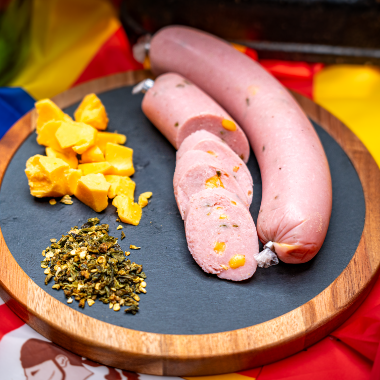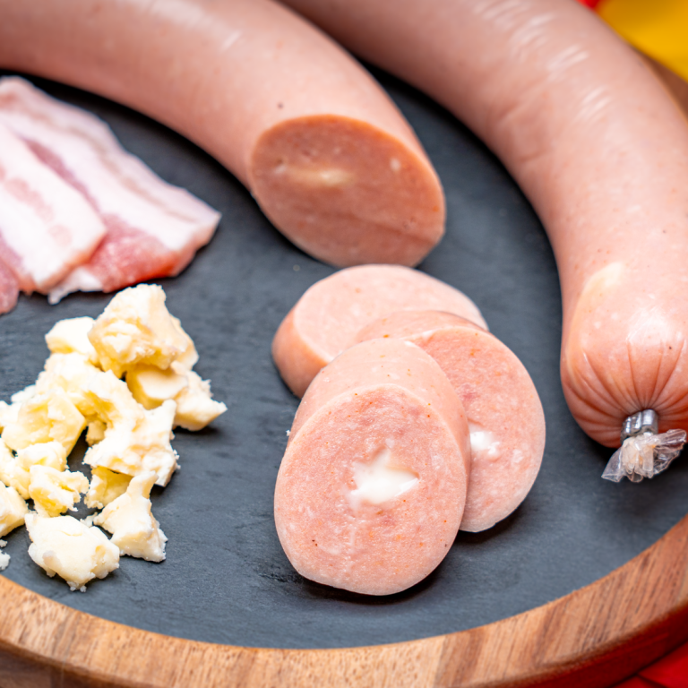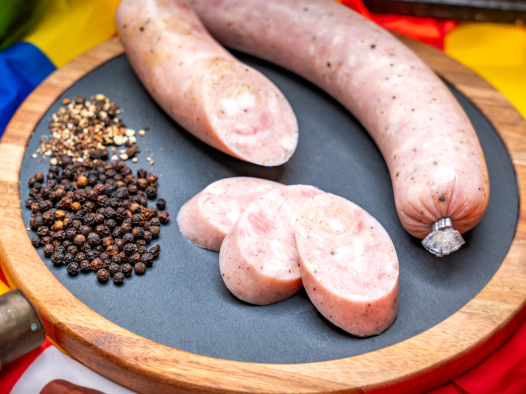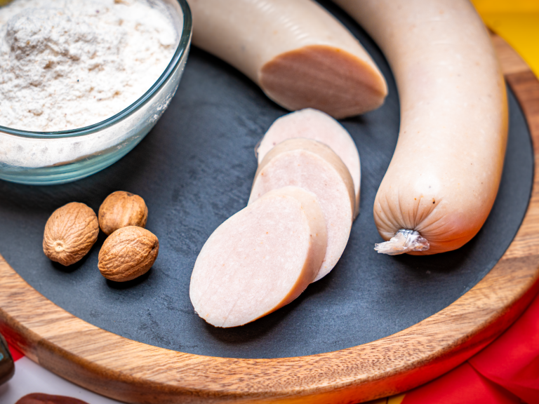 Estilo alemán, sabor suave y especiado, textura firme y jugosa.